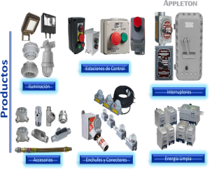 Algunas de las marcas con las que trabajamos, Appleton, Eaton Crouse Hinds Mako, Internacional.